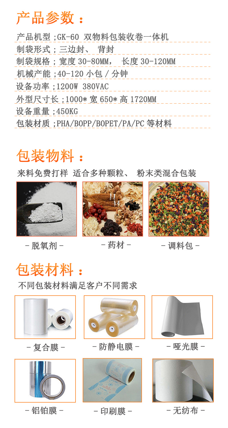 双物料脱氧剂包装机一体机