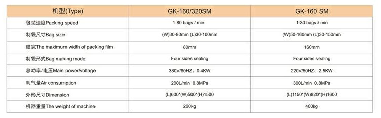 1.彩色触摸屏和稳定可靠的双轴高精度输出的PLC控制,制袋、计量、充填、封合、打码、切袋一次完成。